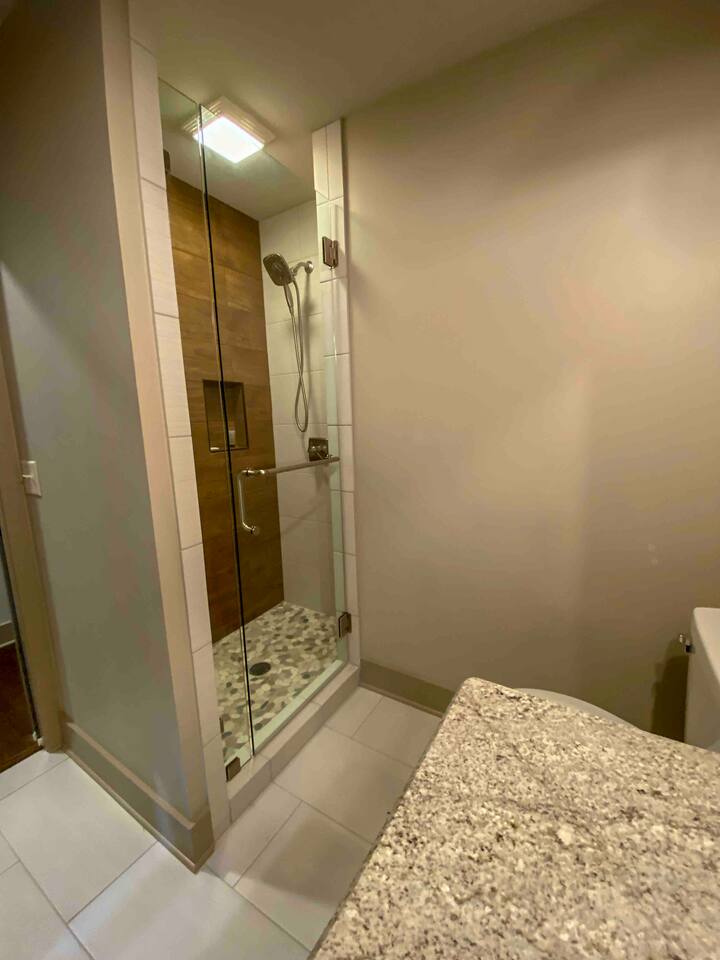 There is a ramp from the parking area to the front door with no steps required to enter the property. Downstairs is "wheelchair friendly", not ADA compliant, with a ramp from the parking area, flush front door entry, 36" doorways, and a walk-in oversized shower in the master bedroom on the main floor.